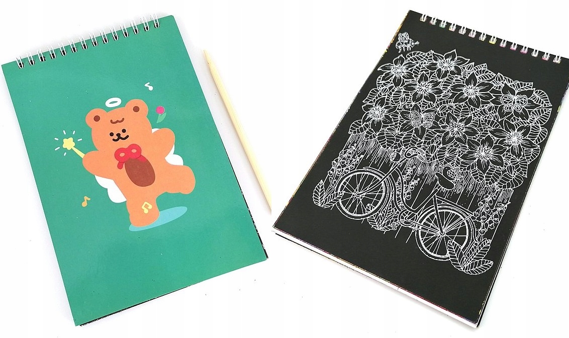 W zestawie znajduje się 10 kart oraz patyczek do zdrapywania. Produkt w opakowaniu foliowym. Wydrapywanka w formie notesu na spirali.